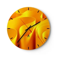 Horloge murale - Pendule murale - Formes abstraites dorées ressemblant à des vagues de lumière - 30x30cm - Comme les vagues du soleil - Décoration murale moderne pour le salon, la cuisine et la chambre ARTTOR