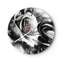 Horloge murale - Pendule murale - Illustration de rose en noir et blanc dans un style de dessin classique - 30x30cm - Toujours une reine - Décoration murale moderne pour le salon, la cuisine et la chambre ARTTOR
