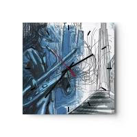 Horloge murale - Pendule murale - Un motif abstrait dans des tons de bleu avec des accents orange. - 30x30cm - Voyage au centre du ciel - Décoration murale moderne pour le salon et la chambre ARTTOR