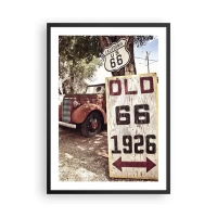 Affiche dans un cadre noir - Poster - Oldtimer au panneau Route 66 - 50x70cm - La légende de la province américaine - Décoration murale moderne pour le salon et la chambre ARTTOR
