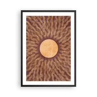 Affiche dans un cadre noir - Poster - Soleil stylisé avec des rayons dans des tons dorés et marron - 50x70cm - Icône du soleil - Décoration murale moderne pour le salon et la chambre ARTTOR