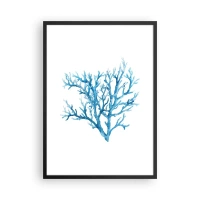 Affiche dans un cadre noir - Poster - Corail bleu en style aquarelle sur fond blanc - 50x70cm - Filigrane nautique - Décoration murale moderne pour le salon et la chambre ARTTOR