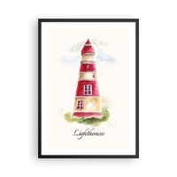 Affiche dans un cadre noir - Poster - Illustration à l'aquarelle d'un phare sur fond clair - 50x70cm - Il y a toujours beau temps autour - Décoration murale moderne pour le salon et la chambre ARTTOR