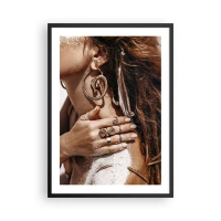 Affiche dans un cadre noir - Poster - Détail de bijoux sur fond de cuir sable - 50x70cm - Reine des plages sauvages - Décoration murale moderne pour le salon et la chambre ARTTOR