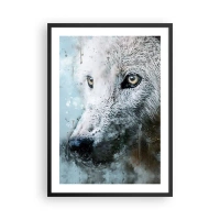 Affiche dans un cadre noir - Poster - Portrait de loup avec des détails artistiques à l'aquarelle - 50x70cm - Rencontrez l'âme du loup - Décoration murale moderne pour le salon et la chambre ARTTOR
