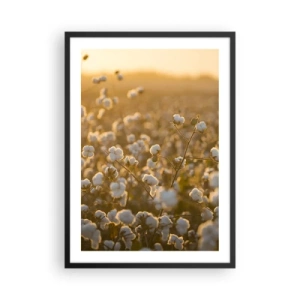 Affiche dans un cadre noir - Poster - Un champ de coton dans la chaude lumière du soleil couchant - 50x70cm - Champ moelleux - Décoration murale moderne pour le salon et la chambre ARTTOR