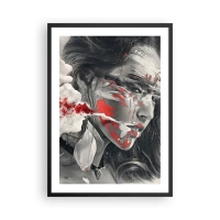 Affiche dans un cadre noir - Poster - Portrait artistique avec un accent rouge - 50x70cm - Dans les fumées de l'absurde - Décoration murale moderne pour le salon et la chambre ARTTOR