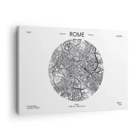Impression sur toile - Image sur toile - Une carte de Rome dans un style minimaliste, noir et blanc - 70x50cm - Anatomie de Rome - Décoration murale moderne pour le salon et la chambre ARTTOR