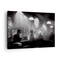 Impression sur toile - Image sur toile - Scène de boîte de nuit de jazz en noir et blanc - 70x50cm - Dans une ambiance jazz - Décoration murale moderne pour le salon et la chambre ARTTOR