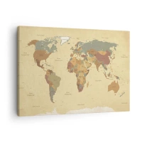 Impression sur toile - Image sur toile - Une carte du monde stylisée dans des tons de beige et de couleurs pastel. - 70x50cm - Pour vous - le monde entier - Décoration murale moderne pour le salon et la chambre ARTTOR