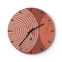 Horloge murale - Pendule murale - Géométrie des cercles dans les tons de terre cuite et de rose - 30x30cm - Une relation proche - Décoration murale moderne pour le salon, la cuisine et la chambre ARTTOR