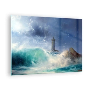 Impression sur verre - Image sur verre - Un phare parmi les vagues agitées de l'océan - 70x50cm - En garde contre les éléments - Décoration murale moderne pour le salon et la chambre ARTTOR