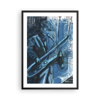 Affiche dans un cadre noir - Poster - Croquis artistique d'un musicien jouant du saxophone - 50x70cm - Rhapsodie urbaine - Décoration murale moderne pour le salon et la chambre ARTTOR