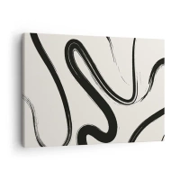 Impression sur toile - Image sur toile - Lignes courbes noires et blanches sur fond clair - 70x50cm - Fantaisie en noir et blanc - Décoration murale moderne pour le salon et la chambre ARTTOR