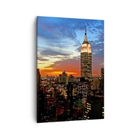 Impression sur toile - Image sur toile - Panorama de la ville avec des gratte-ciel illuminés au crépuscule - 50x70cm - Nuit américaine lumineuse - Décoration murale moderne pour le salon et la chambre ARTTOR