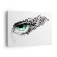 Impression sur toile - Image sur toile - Œil artistique avec iris vert et détails de dessin - 70x50cm - Belle et prête à l'attaque - Décoration murale moderne pour le salon et la chambre ARTTOR