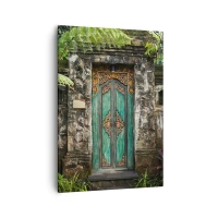 Impression sur toile - Image sur toile - Portes décoratives entourées de végétation tropicale - 50x70cm - Porte vers un monde exotique - Décoration murale moderne pour le salon et la chambre ARTTOR
