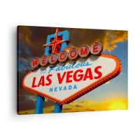 Impression sur toile - Image sur toile - Le célèbre panneau Welcome to Fabulous Las Vegas au coucher du soleil - 70x50cm - Après un sourire du destin - Décoration murale moderne pour le salon et la chambre ARTTOR