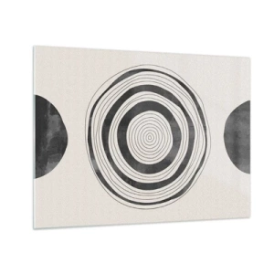 Impression sur verre - Image sur verre - Motif abstrait noir et blanc avec des cercles concentriques - 70x50cm - Ce qui est important c'est ce qu'il y a entre les deux - Décoration murale moderne pour le salon et la chambre ARTTOR