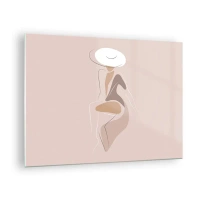 Impression sur verre - Image sur verre - Une silhouette minimaliste d'une femme sur un fond beige - 70x50cm - Icone féminin - Décoration murale moderne pour le salon et la chambre ARTTOR