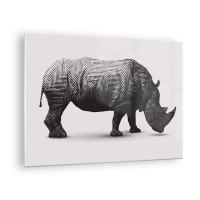 Impression sur verre - Image sur verre - Rhinocéros noir et blanc avec des motifs géométriques - 70x50cm - Beauté géométrique de la nature - Décoration murale moderne pour le salon et la chambre ARTTOR