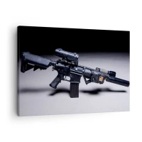 Impression sur toile - Image sur toile - Un fusil moderne en noir sur fond sombre - 70x50cm - Chevalier ténébreux - Décoration murale moderne pour le salon et la chambre ARTTOR