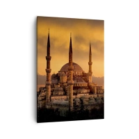 Impression sur toile - Image sur toile - La mosquée au coucher du soleil aux couleurs chaudes - 50x70cm - Dieu est grand - Décoration murale moderne pour le salon et la chambre ARTTOR