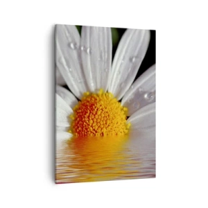 Impression sur toile - Image sur toile - Une marguerite blanche avec des gouttes d'eau immergées dans un reflet d'eau - 50x70cm - Le soleil levant des marguerites - Décoration murale moderne pour le salon et la chambre ARTTOR