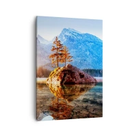 Impression sur toile - Image sur toile - Paysage de montagne avec un lac et une forêt - 50x70cm - Double paysage - Décoration murale moderne pour le salon et la chambre ARTTOR