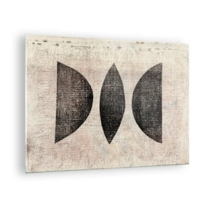 Impression sur verre - Image sur verre - Formes géométriques noires sur fond beige - 70x50cm - Abstraction ethnique - Décoration murale moderne pour le salon et la chambre ARTTOR