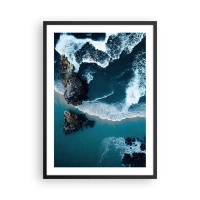 Affiche dans un cadre noir - Poster - Un paysage pittoresque avec une falaise sur l'eau dans des tons de bleu. - 50x70cm - Abstraction nautique - Décoration murale moderne pour le salon et la chambre ARTTOR