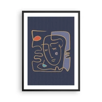 Affiche dans un cadre noir - Poster - Visage abstrait minimaliste sur fond bleu marine dans un style d'art en ligne - 50x70cm - En réflexion - Décoration murale moderne pour le salon et la chambre ARTTOR