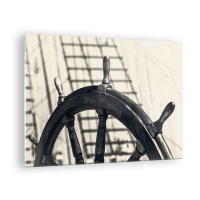 Impression sur verre - Image sur verre - Roue de navire nautique noire et blanche - 70x50cm - Histoires de mer - Décoration murale moderne pour le salon et la chambre ARTTOR