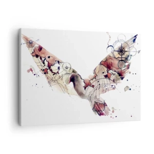 Impression sur toile - Image sur toile - Silhouette d'oiseau artistique avec des motifs géométriques - 70x50cm - Un pèlerin volant - Décoration murale moderne pour le salon et la chambre ARTTOR