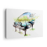 Impression sur toile - Image sur toile - Aquarelle artistique d'un piano avec la nature en arrière-plan - 70x50cm - Enchanté en musique - Décoration murale moderne pour le salon et la chambre ARTTOR