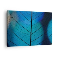 Impression sur toile - Image sur toile - Gros plan d'une feuille bleue avec des détails de veines visibles - 70x50cm - Construction complexe - Décoration murale moderne pour le salon et la chambre ARTTOR