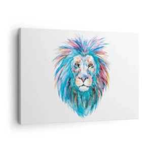 Impression sur toile - Image sur toile - Portrait à l'aquarelle d'un lion aux couleurs vives - 70x50cm - Aura électrique - Décoration murale moderne pour le salon et la chambre ARTTOR