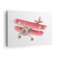 Impression sur toile - Image sur toile - Avion rétro rouge sur fond blanc - 70x50cm - Prêt pour les hauts vols - Décoration murale moderne pour le salon et la chambre ARTTOR