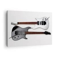 Impression sur toile - Image sur toile - Deux guitares électriques en noir et blanc sur fond clair. - 70x50cm - Harmonie des formes - Décoration murale moderne pour le salon et la chambre ARTTOR