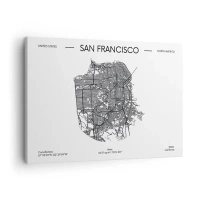 Impression sur toile - Image sur toile - Une carte de San Francisco dans un style minimaliste en noir et blanc. - 70x50cm - Anatomie de San Fransisco - Décoration murale moderne pour le salon et la chambre ARTTOR
