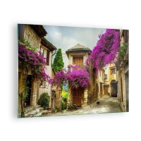 Impression sur verre - Image sur verre - Une rue colorée avec des plantes fleuries et de la lumière - 70x50cm - Impression - une rue italienne - Décoration murale moderne pour le salon et la chambre ARTTOR