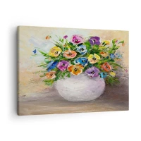 Impression sur toile - Image sur toile - Un bouquet de fleurs colorées dans un vase blanc - 70x50cm - Nature morte dans un vase blanc - Décoration murale moderne pour le salon et la chambre ARTTOR