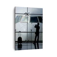 Impression sur toile - Image sur toile - Aéroport avec des silhouettes de personnes et une vue de l'avion - 50x70cm - Vis-à-vis de l'aéroport - Décoration murale moderne pour le salon et la chambre ARTTOR