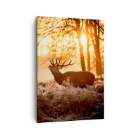 Impression sur toile - Image sur toile - Deux cerfs au coucher du soleil dans un paysage hivernal - 50x70cm - Le rêve d'un chasseur - Décoration murale moderne pour le salon et la chambre ARTTOR