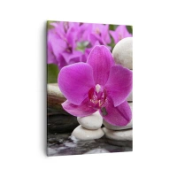 Impression sur toile - Image sur toile - Orchidée violette, pierres et bambou avec de l'eau dans un cadre relaxant - 50x70cm - Tu te reposes déjà - Décoration murale moderne pour le salon et la chambre ARTTOR