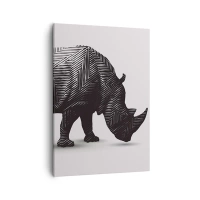 Impression sur toile - Image sur toile - Silhouette graphique d'un rhinocéros dans un motif noir et blanc - 50x70cm - Beauté géométrique de la nature - Décoration murale moderne pour le salon et la chambre ARTTOR
