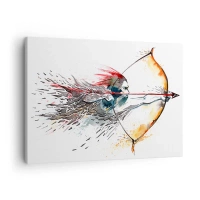 Impression sur toile - Image sur toile - Aquarelle dynamique d'un guerrier avec un arc et des flèches - 70x50cm - Guerrier mythique avec un arc de feu - Décoration murale moderne pour le salon et la chambre ARTTOR