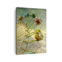 Impression sur toile - Image sur toile - Photo rétro d'une grande roue avec des palmiers contre le ciel - 50x70cm - On va faire la fête - Décoration murale moderne pour le salon et la chambre ARTTOR