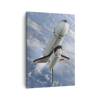 Impression sur toile - Image sur toile - Une fusée spatiale s'élevant devant la Terre en arrière-plan - 50x70cm - Ascension cosmique - Décoration murale moderne pour le salon et la chambre ARTTOR
