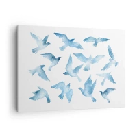 Impression sur toile - Image sur toile - Une aquarelle subtile représentant des oiseaux en vol - 70x50cm - Oiseaux bleus - Décoration murale moderne pour le salon et la chambre ARTTOR
